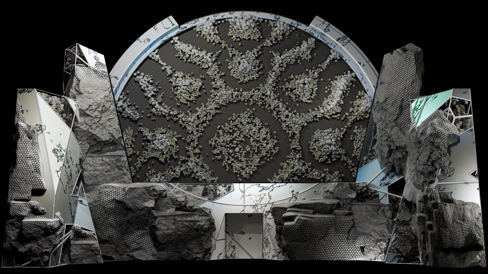 In this work, fragments of stone respond to sound, and the humming itself becomes visible. Gǔ Lǐ – the principle of resonance – describes the hidden logic of matter, the force by which the world vibrates and interacts. The artistic intention is not to rely on clearly identifiable imagery, but instead to create visuals that are open to interpretation. By offering more than just familiar images, we can truly spark the audience’s imagination. The intriguing moment lies much more in the mere suggestion of a face and in the threshold at which the perception begins to dissolve. The idea of staging Chladni-like resonance patterns through animated grains creates a compelling connection between excellent sound design and a refined visual layer. This is how the work unfolds its impact, in moments both subtle and loud.
