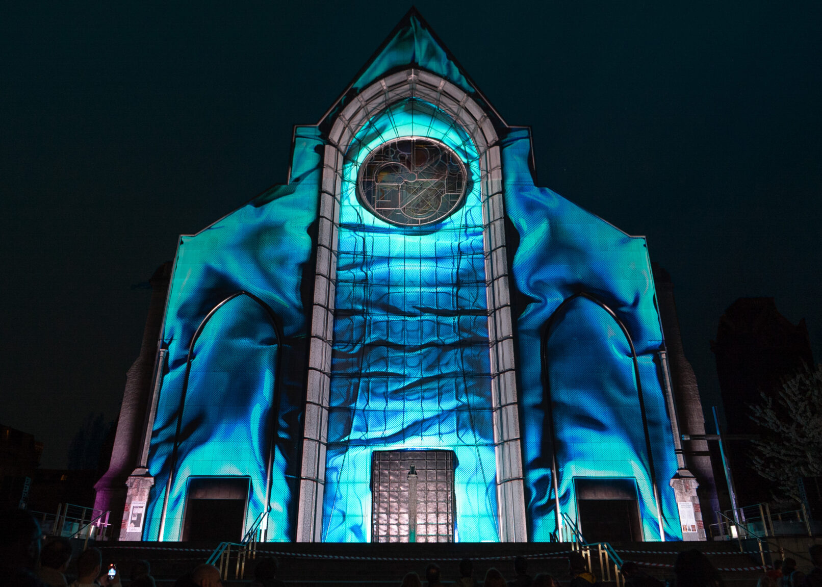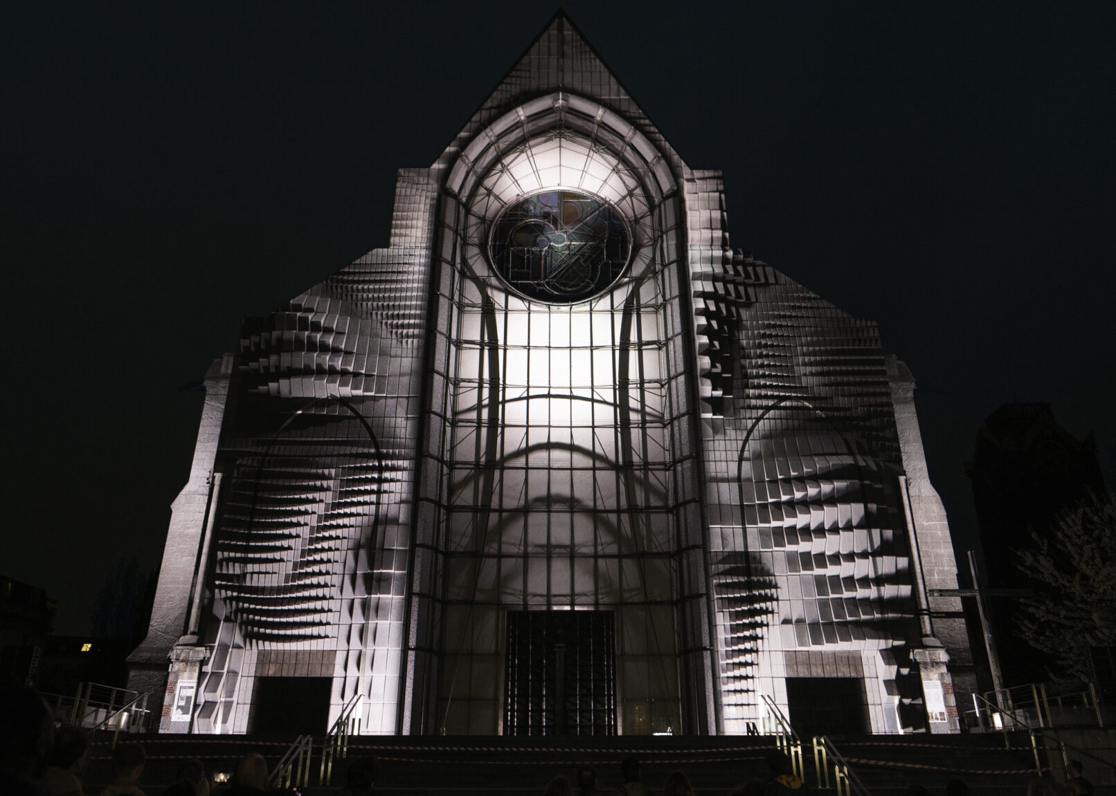 I noticed the modern façade of the Cathédrale Notre-Dame-de-la-Treille on a walk through Lille a few years ago. Since then, I have had the desire to realise a work on this architecture. What makes it special is not only the aesthetics of its external form, but also the fact that it is constructed in such a way that it lets daylight into the interior of the building. I took up this peculiarity in my concept and translated it into the idea of asserting the translucent surface.