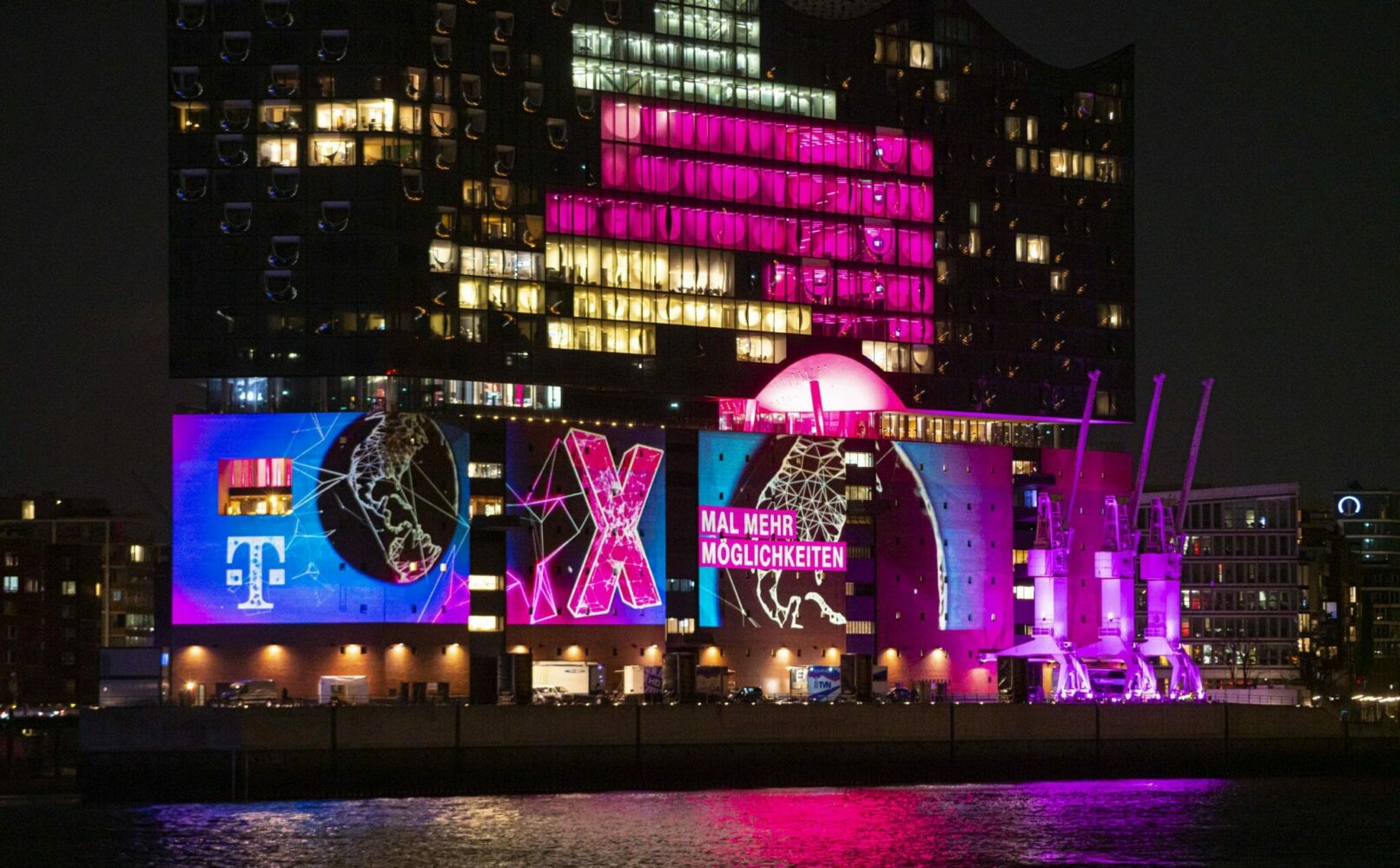 Launch of the new Telekom Business campaign X MAL MEHR – An illumination on the iconic Elbphilharmonie in Hamburg.