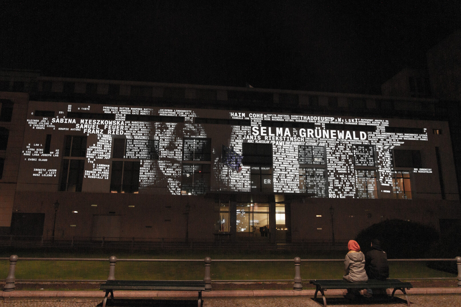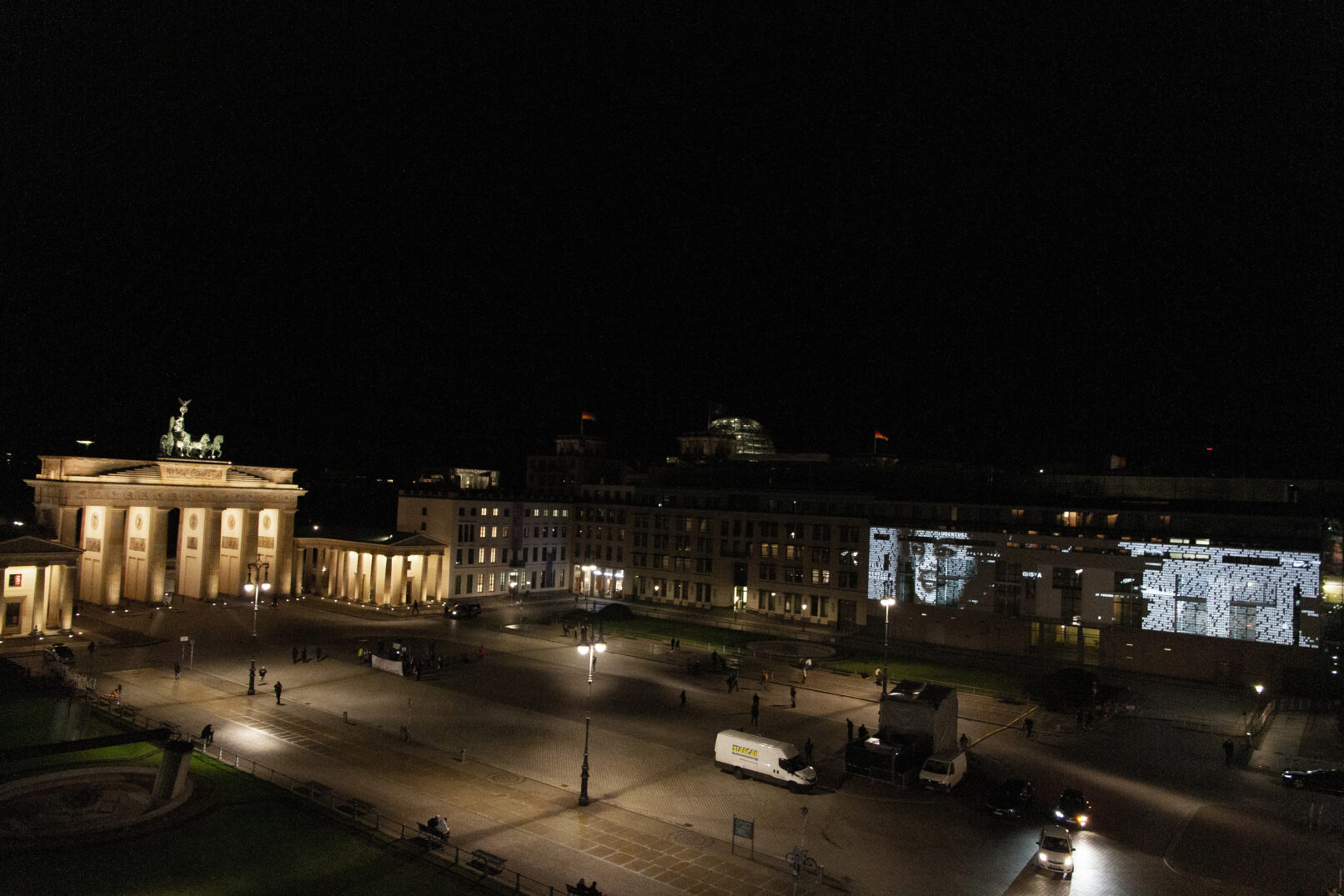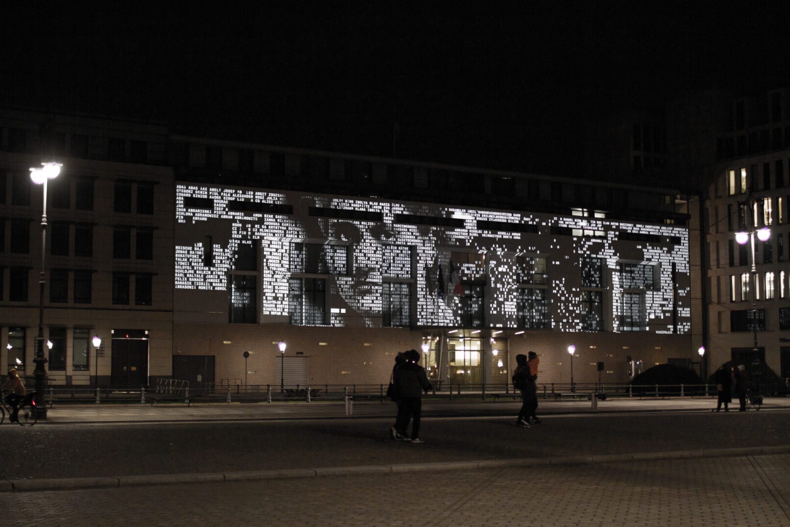 On January 27,2021, the day of remembrance of the victims of National Socialism, URBANSCREEN realized a media installation drawing attention to #everynamecounts, illuminating the French Embassy in Berlin. It was important for us that our show would convey the emotional dimension of this archive, as well as to show its enormous mass of data. This in turn stands for a mass fate that bundles many, many individual fates. Finally, the viewers should also understand how everyone could participate.