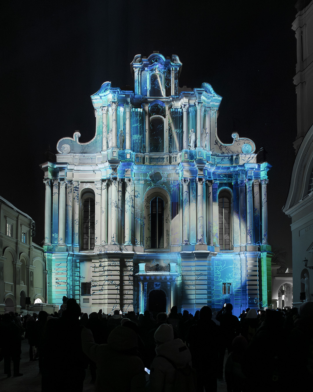 We would also like to express our particular gratitude to Giedrius Tumosa from Videoprojektai, who did a truly outstanding job bringing the work to life on the façade using a total of eight Barco projectors with 20,000 ANSI lumen each. Projection mapping truly succeeds only when media technology performs at its very best — thank you so much for your commitment, meticulous precision, and dedication.