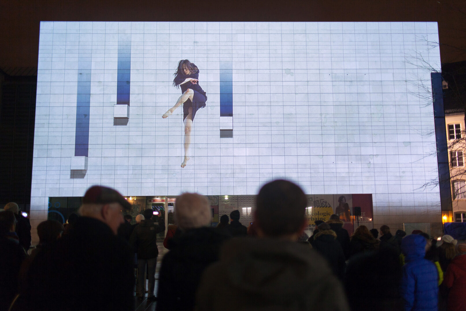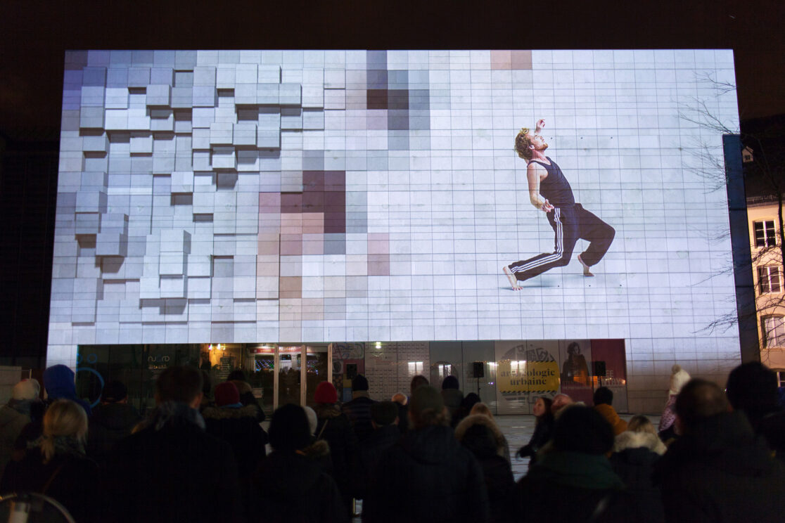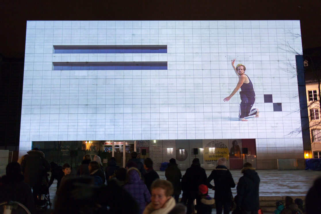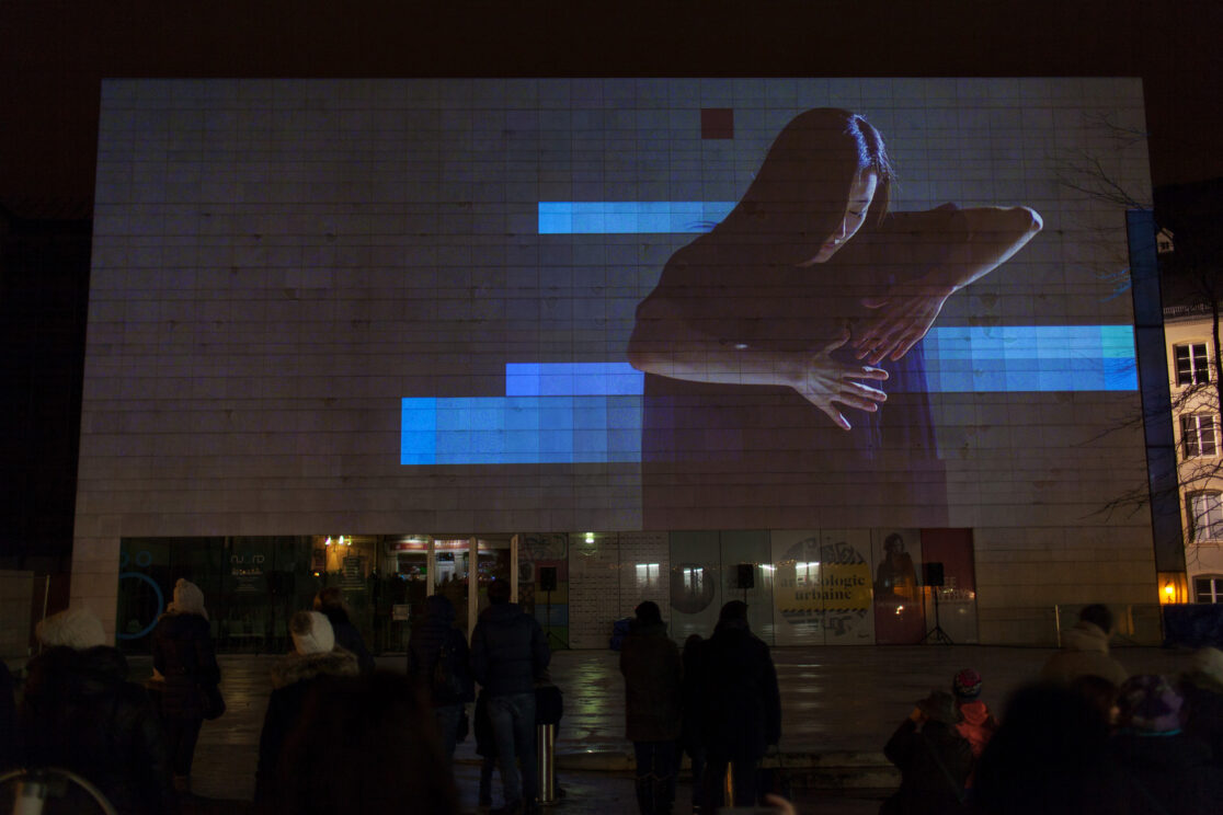 Instead of pursuing the optical illusions that projection mappings have become so famous for, both levels of reality remain recognizable. PRESENT TENSE explores the phenomenon of emergence – the theme of the Luxembourg Light Festival 2017 – by superimposing different aesthetic means of expression. What happens when dance is disconnected from the physical presence of a human body? Can the architectural body relocate the image in the here and now? And will a digital video still be perceived as such once the borders of the screen have vanished?