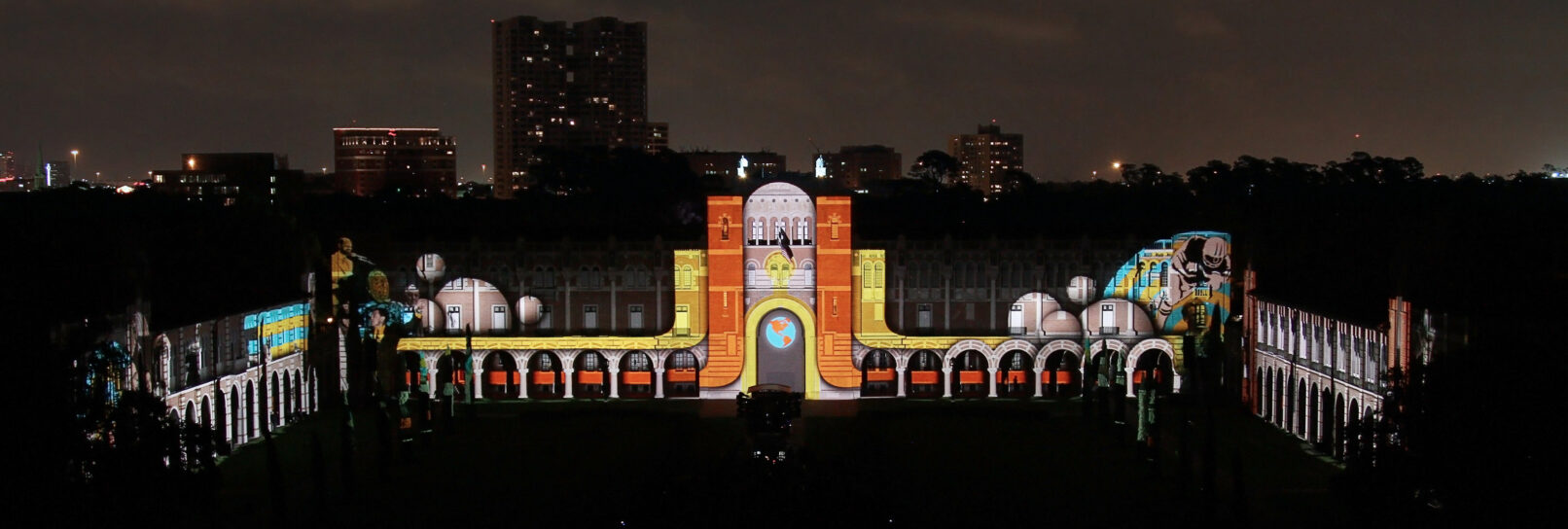 Rice invited URBANSCREEN to stage the Spectacle in its academic quadrangle during its Centennial Celebration. The Spectacle chronicles the university´s history by interpreting different decades and its inspiring story.