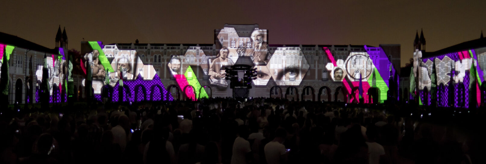 With a 270° approach and a persistent length of 240m projection as well as full spatial sound (6.1), it was a great immersive experience and a pleasure for us to mingle with the centennial audience on the campus.